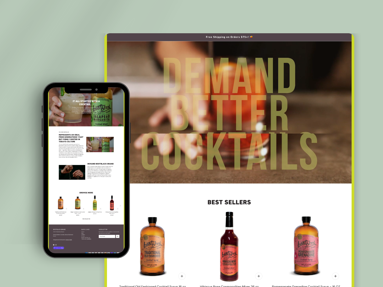 Bootblack Brand, known for its small-batch cocktail syrups and soda mixes, has built a reputation around quality, tradition, and bold flavor. With a product line rooted in craft and authenticity, they needed a Shopify website that could bring their story to life, while providing customers with a seamless, modern e-commerce experience.